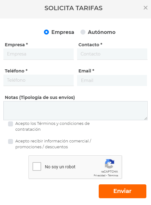 Las empresas y autónomos que realicen envíos con regularidad podrán disfrutar de unas tarifas especiales, adaptadas a sus necesidades. Tan sólo debes ponerte en contacto con nosotros a través de www.sendiroo.es/empresas y ‘Solicitar tarifas’.